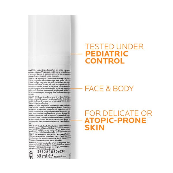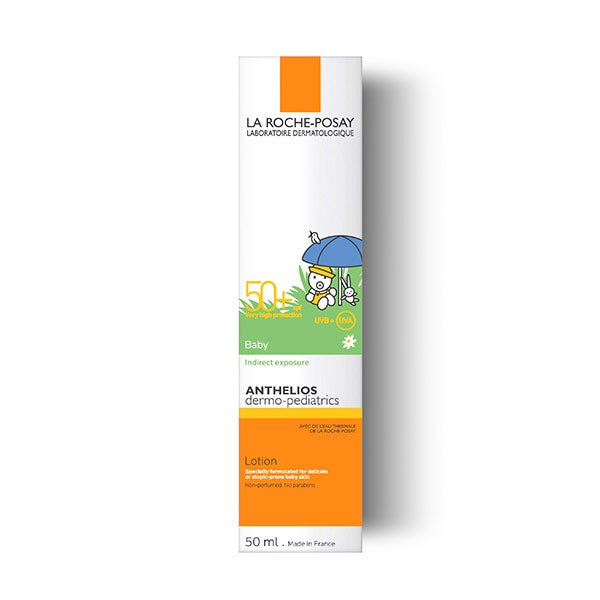 Anthelios Dermo-Pediatrics Leite Bebê spf50+ é um protetor solar facial e corporal para a pele frágil, delicada e clara dos bebês de muito alta proteção de amplo espectro UVA/UVB, para a exposição indireta ao sol. Ajuda a prevenir o estresse oxidativo derivado da exposição aos raios infravermelhos e à poluição. Contém uma proteção ótima e equilibrada reforçada contra os raios UVA (mais rigorosa que as recomendações europeias sobre produtos de proteção solar) graças ao sistema filtrante patenteado com [XL-PROTECT]TM combinado com Água Termal de La Roche-Posay, calmante e antioxidante.