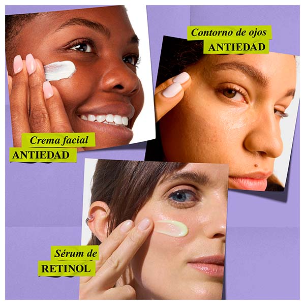 Aplique o Retinol Serum sobre a pele limpa, evitando o contato direto com os olhos e os lábios. Continue com o Multi-Corrective Cream no rosto e pescoço. Termine com o tratamento para a zona do contorno dos olhos nas quatro áreas do olho e massageie até que seja absorvido.