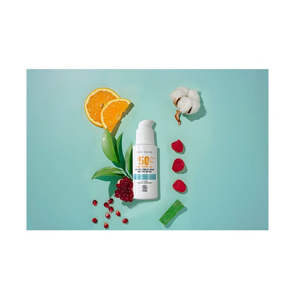 Ingredients: Glycerin, Zinc Oxide, Caprylic/capric Triglyceride, Isoamyl Cocoate, Titanium Dioxide, Cetearyl Alcohol, Aloe Barbadensis Leaf Juice*, Ceramide NP, Gossypium Herbaceum (Cotton) Callus Culture, Sodium Hyaluronate, Ferulic Acid, Boerhavia Diusa Root Extract, Camellia Sinensis Leaf Extract (Green & White Tea), Glycyrrhiza Glabra Root Extract*, Leontopodium Alpinum Flower/Leaf Extract*, Calendula Ocinalis Flower Extract, Centella Asiatica Extract, Punica Granatum Fruit Extract, Glyceryl Stearate, Jojoba Esters, Helianthus Annuus Seed Wax, Tocopherol (Vitamin E), Ascorbyl Palmitate, Sodium Stearoyl Glutamate, Polyglycerin-3, Xanthan Gum, Citric Acid, Dehydroacetic Acid, Benzyl Alcohol, Potassium Sorbate, Sodium Benzoate, Silica, CI77492, CI77491, CI77499, Parfum. *Ingredients from organic farming | Ingredientes procedentes de la agricultura ecológica | 99% Natural origin of total.