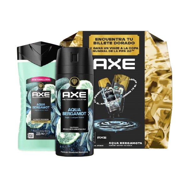 CHEIRE COMO UM LUXO COMO UM PERFUME Axe Aqua Bergamota tem uma fragrância cristalina e clássica com um toque frutado. As notas de bergamota cítrica e sálvia aromática proporcionam uma sensação de frescor que, graças a um toque de bagas de zimbro, dá uma nova e moderna dimensão a este clássico.