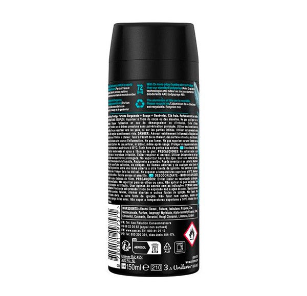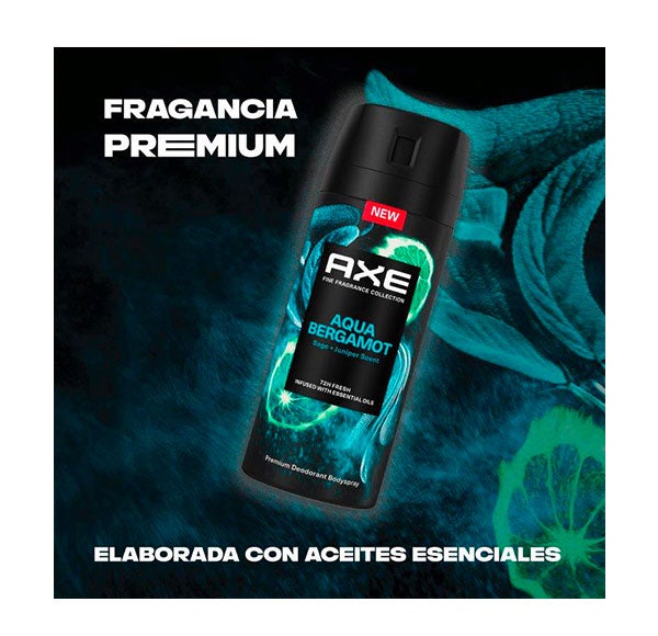 Desodorante em spray para homem Axe Aqua Bergamot Fragrância Premium 150ml.