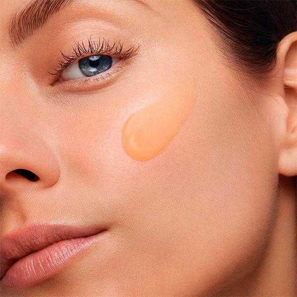 Aplique uma pequena quantidade de gel AQUASOURCE+ Vitamin Glow nas pontas dos dedos, aplique o gel com uma leve pressão e distribua uniformemente sobre as bochechas, testa e queixo.