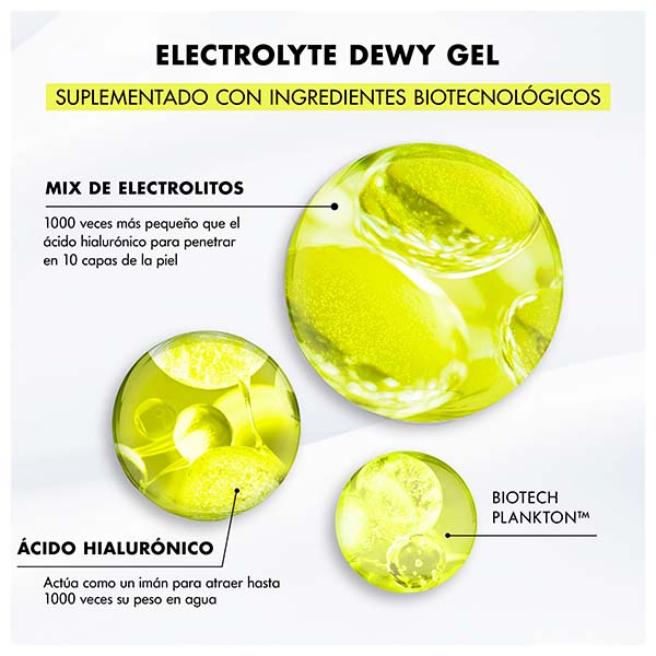 Sua textura de gel refrescante proporciona uma sensação de frescor instantânea e é potencializada por uma combinação avançada de 7000 mg de Electrolyte Mix e 1000 mg de Hyalu B3 para resultados duradouros. Os eletrólitos, 1000 vezes menores que o ácido hialurônico, atuam como micropropulsores de água, levando a umidade para as camadas superficiais da pele para proporcionar até 100 horas de hidratação contínua após uma única aplicação.