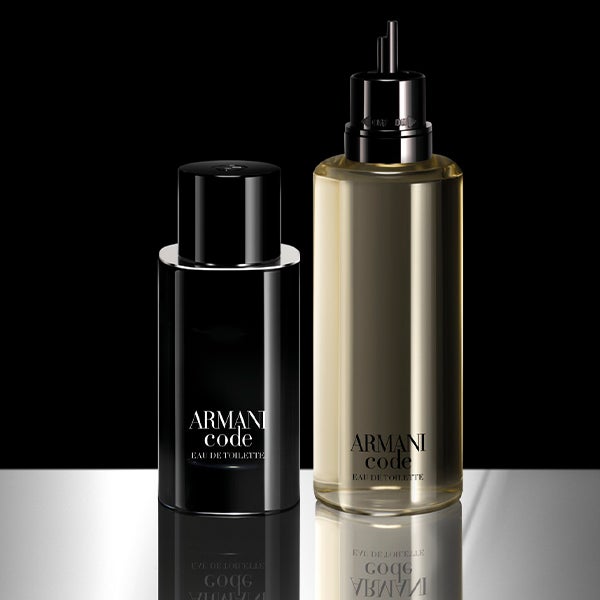 O novo frasco de Armani Code, elaborado como um frasco de declaração com uma forma única, arredondada e quadrada, reinventa uma identidade audaciosa para uma fragrância icônica. Com sua forma negra, elegante e masculina, realçada pelos reflexos prateados e pelas experiências sensoriais, o frasco se ergue como um objeto de design impactante, criado para perdurar. Este novo frasco também é recarregável em todos os tamanhos, o que demonstra a preocupação de Giorgio Armani pelo planeta.
