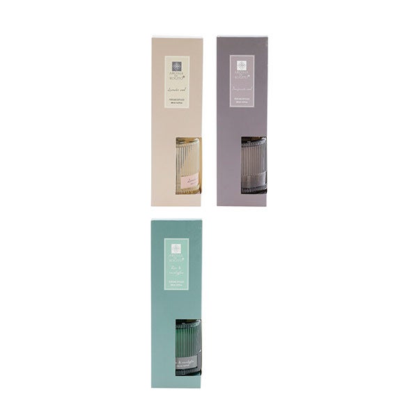 3 Aromas: Madeira de romã - Rosa e eucalipto - Madeira de lavanda.