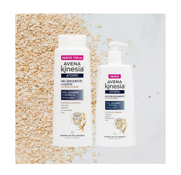 O Gel Emoliente ATOPIC de Aveia Kinesia foi especificamente desenvolvido para aliviar e acalmar a PELE SENSÍVEL E ATÓPICA.