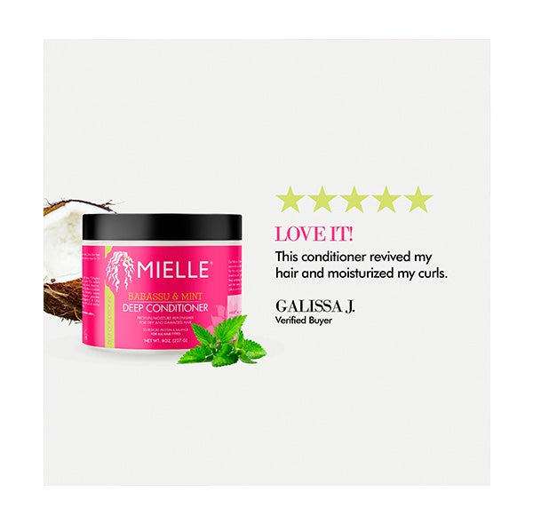 Derivado de uma fruta de palmeira amazônica, o óleo de babassu contém altas concentrações de esterois e tocoferóis, que podem melhorar a saúde do cabelo e do couro cabeludo. É por isso que é um dos principais ingredientes deste condicionador orgânico para cabelo. Nosso condicionador profundo de óleo e menta Babassu está enriquecido com ácidos graxos e óleos naturais, bem como aminoácidos complexos de trigo, soja e outros ingredientes totalmente naturais, para ajudar a hidratar e repor o cabelo. Dê ao seu cabelo o cuidado que ele merece: ¡peça hoje seus produtos para cabelo da Mielle Organics!