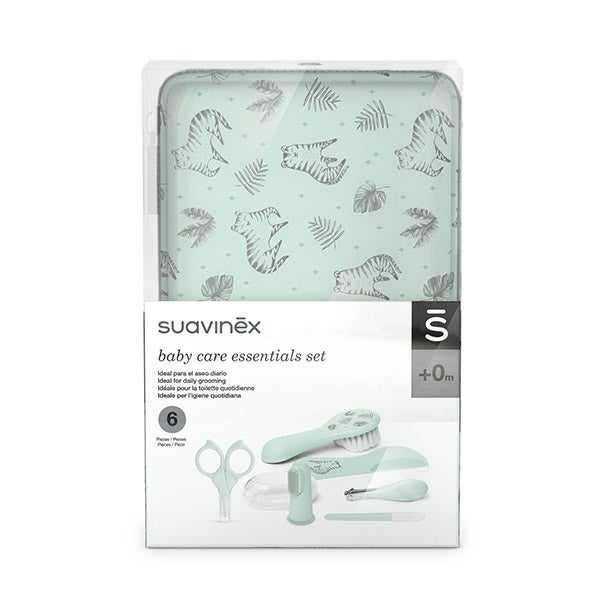 Kit necessaire Suavinex para bebês com 6 produtos essenciais para facilitar o cuidado diário e delicado que o bebê precisa desde o primeiro dia.