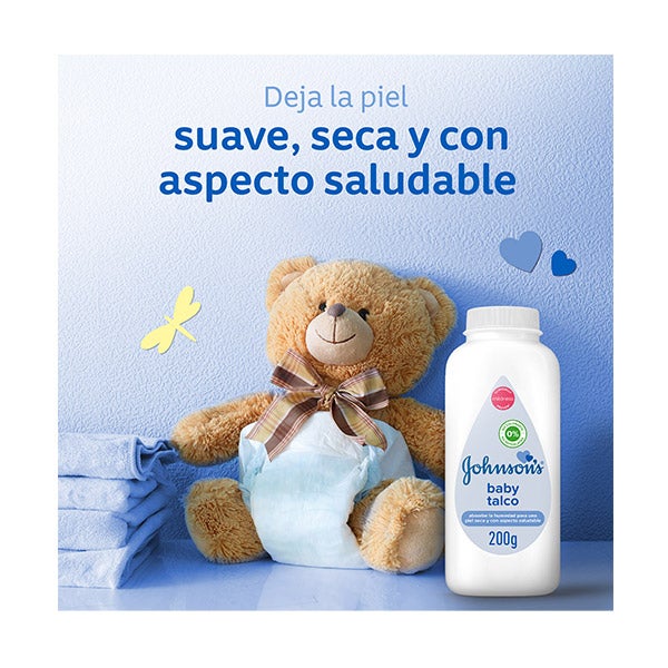O Talco da Johnson’s Baby absorve o excesso de umidade da pele do bebê e a mantém macia e seca durante o dia.