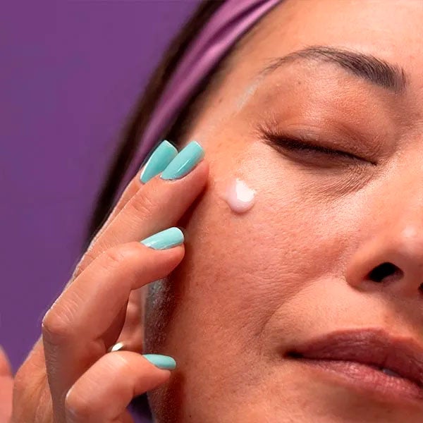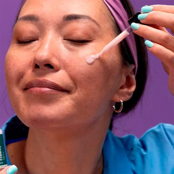 Com a ajuda da pipeta, aplique 4 gotas distribuídas entre a testa, as bochechas e o queixo.