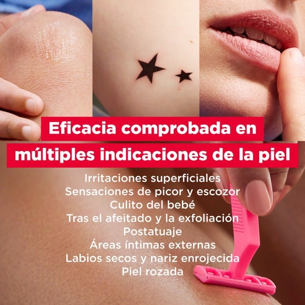 Aplicar duas vezes ao dia sobre a pele limpa e seca em múltiplas indicações cutâneas: irritações superficiais, sensações de coceira e ardor, lábios secos em adultos, nariz avermelhado, bumbum do bebê, pele irritada, área íntima externa, após o barbear, após a tatuagem e após o peeling.