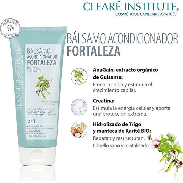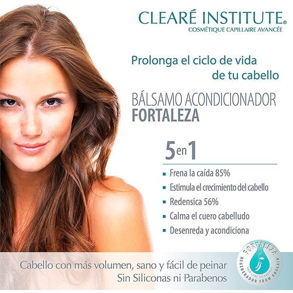 O bálsamo condicionador fortaleza do Clearé Institute, com ingredientes naturais e ecológicos desembaraça e condiciona o cabelo enquanto estimula seu crescimento e fortaleza, devolvendo-lhe o brilho e vitalidade.