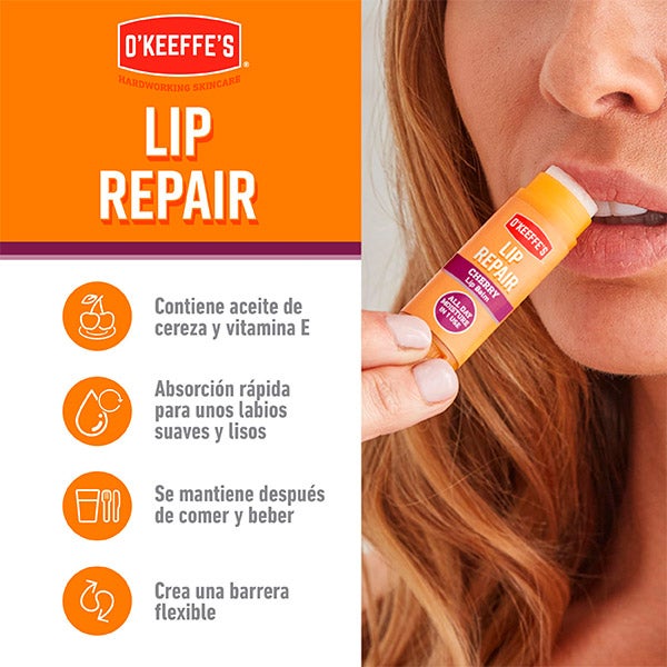 A fórmula altamente eficaz de O'Keeffe's Lip Repair alivia, hidrata e ajuda a reparar os lábios extremamente secos e rachados para deixá-los macios, lisos e saudáveis durante todo o dia.