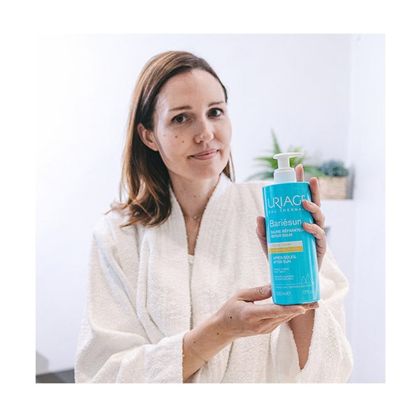 O glicirretinato e a Água Termal de Uriage acalmam intensamente a pele após a exposição ao sol.