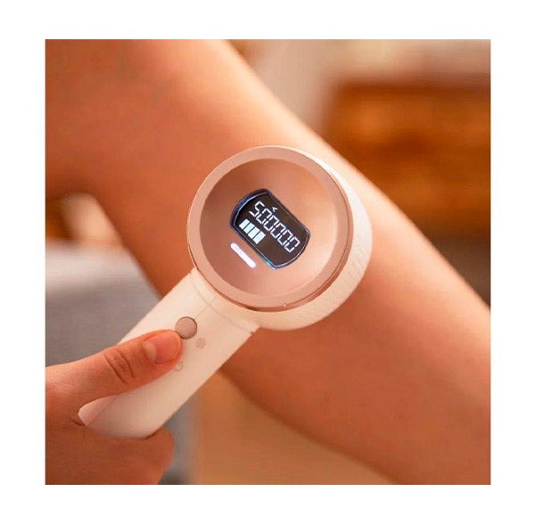 IPL com lâmpada de quartzo otimizada com 500.000 pulsos que permite uma maior eficácia durante o uso para que a depilação tenha melhores resultados e mais rápidos.