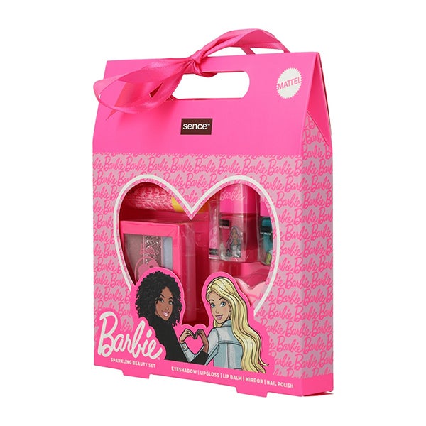 Organize uma noite de garotas com um look glamoroso, graças ao Conjunto de Presente Cosmético Barbie da Sence. No seu interior, você encontrará dois esmaltes de unhas com cores fabulosas, um brilho labial com cor, uma paleta de sombras de olhos com glitter e um bálsamo labial calmante, tudo acompanhado de um prático espelho de bolso.
