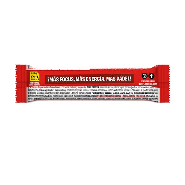 Barra de goma para Padel sabor cola: Goma energética sabor cola para os jogadores de padel que buscam energia e foco durante a partida.