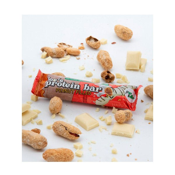 Joe's Protein Bar esta deliciosa barrinha é composta por crocantes placas de wafer recheadas com um suave creme de amendoim, envoltas em uma cobertura de chocolate ao leite.