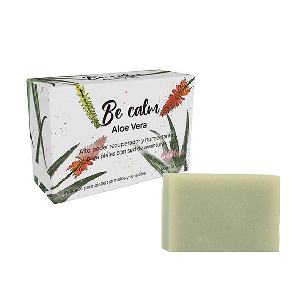 O sabonete vegano BE CALM de Aloe Vera contém propriedades recuperadoras e hidratantes, ideais para estimular o crescimento e a reparação da pele.