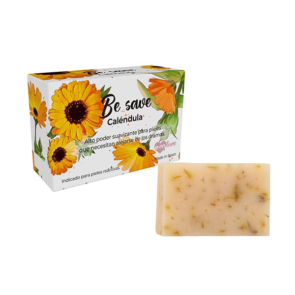O sabão vegano BE SAVE de Calêndula cuida da pele graças ao seu grande poder anti-inflamatório e cicatrizante, sendo ideal para tratar peles castigadas.