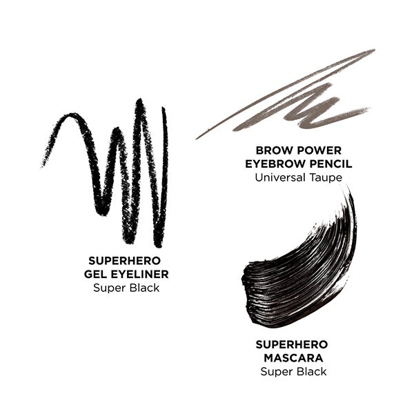 - Superhero No Tug Gel Eyeliner - Lápis Delineador de Olhos: É um lápis delineador de olhos de aplicação super suave, com super pigmentação e super resistência ao longo das horas.