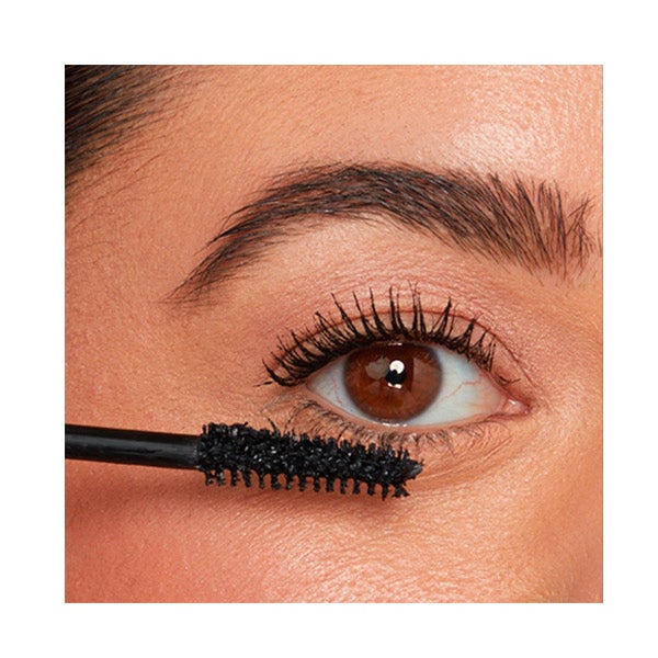 Em seguida, aplique Superhero - Máscara De Cílios Volume e Comprimento desde a base dos cílios e seguindo para cima até as pontas.