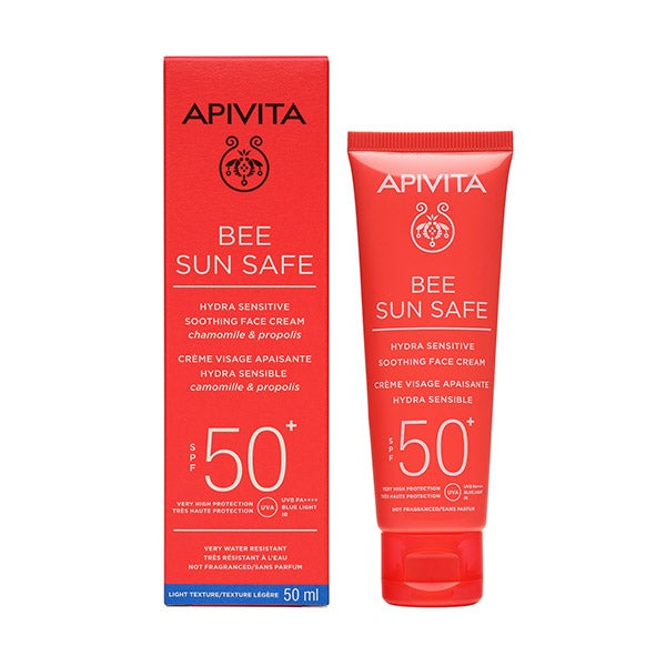 Protetor solar leve e calmante para o rosto.