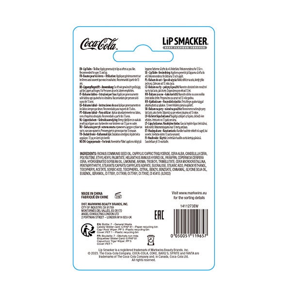 Desfrute do clássico sabor refrescante da Coca Cola. Com o icônico design da garrafa de vidro da Coca-Cola, este bálsamo labial deixa os lábios totalmente hidratados.