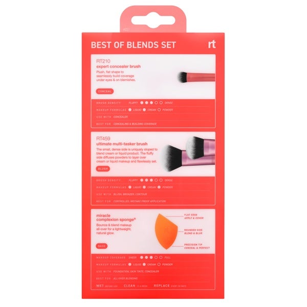 O conjunto Real Techniques Best of Blends Set inclui 3 ferramentas essenciais para alcançar uma base suave e perfeita. Seja aplicando base, corretivo, blush ou bronzer, este conjunto versátil esfuma e constrói seu look com controle e facilidade.