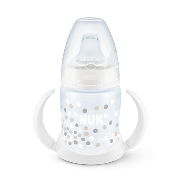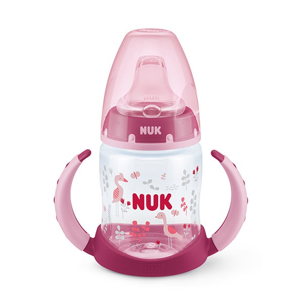 Com indicador de Controle de Temperatura. Alças ergonômicas para uma pegada segura. Promove o aprendizado a beber no copo. Gargalo largo para facilitar o enchimento e a limpeza. NUK ANTI-COLIC AIR SYSTEM melhorado que ajuda a prevenir cólicas. Inclui anel de rosca, disco de fechamento, tampa protetora e bico macio e confortável de Silicone. Sem substâncias nocivas nem odor. BPA Free.