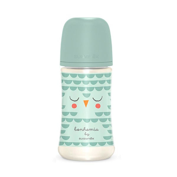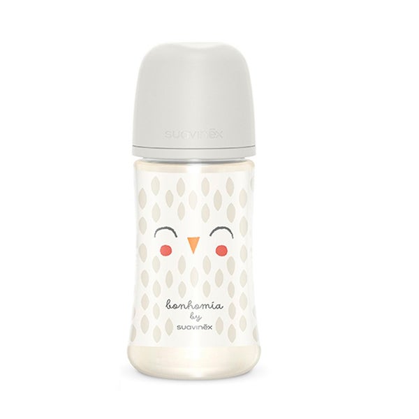 Biberão de 270 ml da Bonhomía, a nova coleção Premium da Suavinex. Biberão com Tetina Fisiológica SX Pro de Silicone, de Fluxo Médio, +3 Meses.