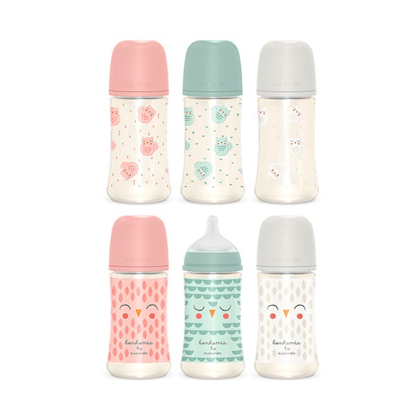 Este biberão é parte da nova coleção Bonhomía da Suavinex. Mais do que dar valor às coisas simples ou desfrutar dos pequenos detalhes, Bonhomía é também a bondade nas maneiras, a honestidade ou a afabilidade no caráter e comportamento.