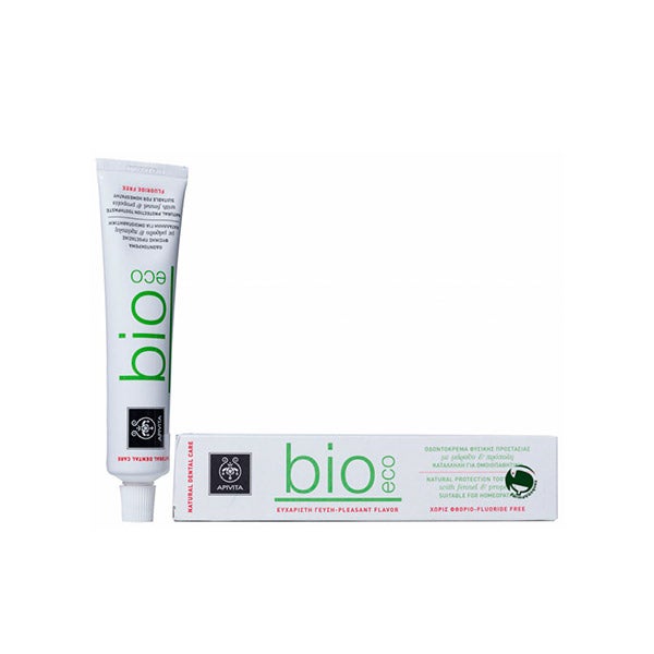 Apivita Bio Eco previne o acúmulo de placa graças ao própolis, árvore do chá e óleos essenciais de eucalipto e funcho. São capazes de proteger contra a cárie e prevenir a gengivite.