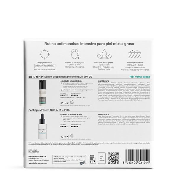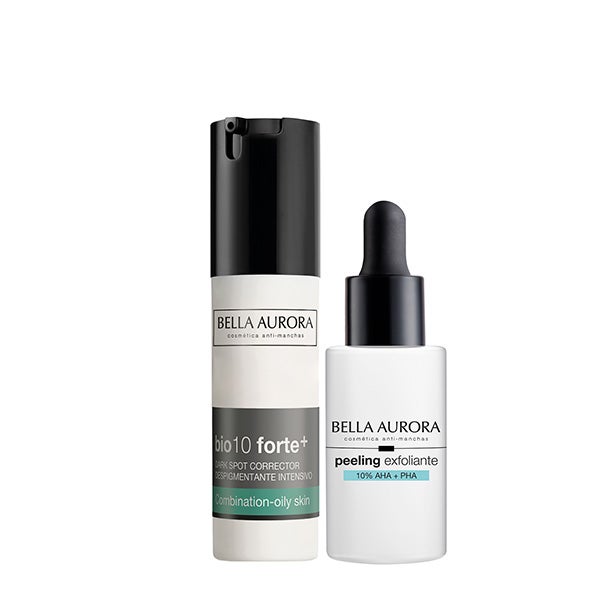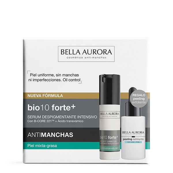 Neste estojo, você encontrará o sérum bio10 forte+ para pele mista-oleosa e peeling esfoliante