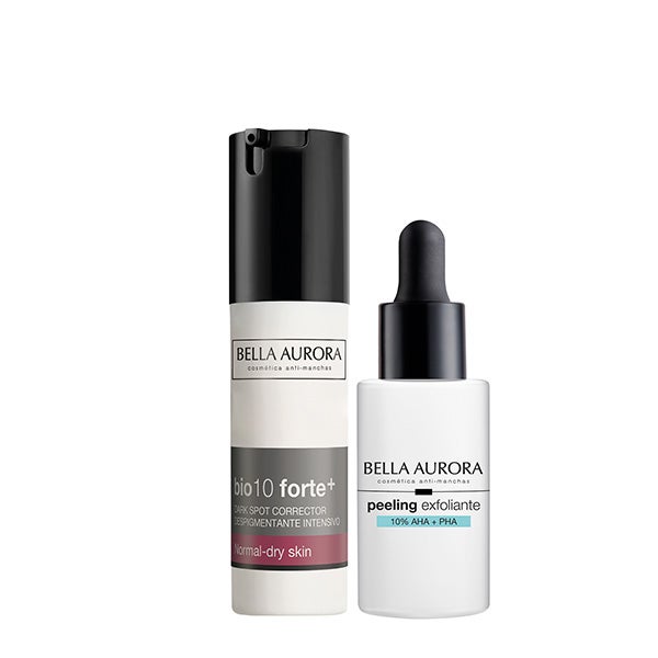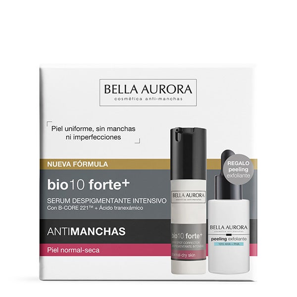 Neste estojo, você encontrará o sérum bio10 forte+ para pele normal-seca e peeling esfoliante