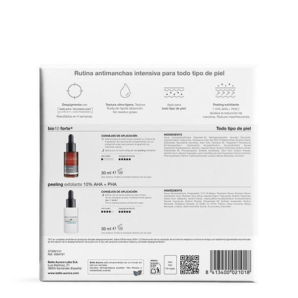 Eficácia: Combina a exclusiva tecnologia despigmentante B-CORE 221TM com extratos naturais à base de plantas para uma ação anti-manchas e iluminadora intensiva.