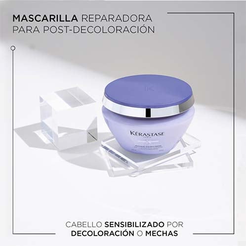 Máscara cremosa para reparar profundamente e fortalecer profundamente a estrutura da fibra e conseguir uma reconstrução do cabelo após a descoloração.