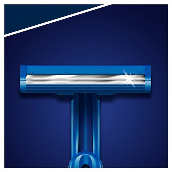 A máquina de barbear Descartáveis Blue II 15+5 Ud da Gillette é de uso descartável, com dupla lâmina eficaz para o barbear. É um produto desenhado para um barbear cômodo e simples, com um formato pouco volumoso que permite seu armazenamento em pequenos necessaires ou até em malas de viagem reduzidas.