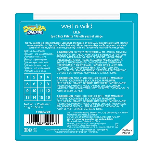 Está pronto para se juntar às divertidas aventuras de Bob Esponja e seus amigos com a paleta mais incrível que você já viu? Sim, capitão! Com 16 pigmentos hiperpigmentados para olhos e rosto em uma mistura de mates suaves como manteiga, brilhos reluzentes, satinados resplandecentes e purpurina multidimensional autoadesiva.