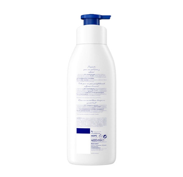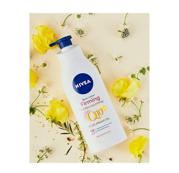 NIVEA Q10 PLUS VITAMIN C Body Milk Reafirmante reafirma visivelmente a pele e melhora sua elasticidade em apenas 10 dias. A fórmula desta loção corporal, enriquecida com Coenzima Q10 e Vitamina C, melhora a elasticidade da pele e sua textura. Indicada para peles secas, este body milk reafirmante hidrata a pele por 48 horas, deixando também uma sensação de suavidade e proporcionando um agradável aroma. Compatibilidade com a pele dermatologicamente comprovada.