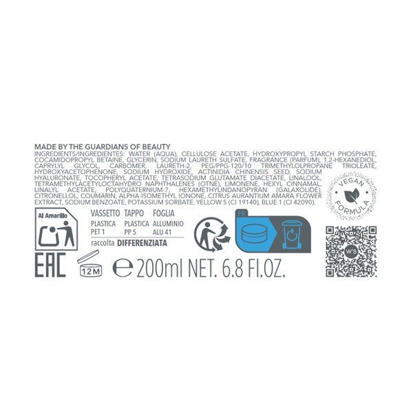 INGREDIENTS/INGREDIENTES: WATER (AQUA), CELLULOSE ACETATE, HYDROXYPROPYL STARCH PHOSPHATE, COCAMIDOPROPYL BETAINE, GLYCERIN, SODIUM LAURETH SULFATE, FRAGRANCE (PARFUM), 1,2-HEXANEDIOL, CAPRYLYL GLYCOL, CARBOMER, LAURETH-2, PEG/PPG-120/10 TRIMETHYLOLPROPANE TRIOLEATE, HYDROXYACETOPHENONE, SODIUM HYDROXIDE, ACTINIDIA CHINENSIS SEED, SODIUM HYALURONATE, TOCOPHERYL ACETATE, TETRASODIUM GLUTAMATE DIACETATE, LINALOOL, TETRAMETHYLACETYLOCTAHYDRO NAPHTHALENES (OTNE), LIMONENE, HEXYL CINNAMAL, LINALYL ACETATE, POLYQUATERNIUM-7, HEXAMETHYLINDANOPYRAN (GALAXOLIDE), CITRONELLOL, COUMARIN, ALPHA-ISOMETHYL IONONE, CITRUS AURANTIUM AMARA FLOWER EXTRACT, SODIUM BENZOATE, POTASSIUM SORBATE, YELLOW 5 (CI 19140), BLUE 1 (CI 42090).