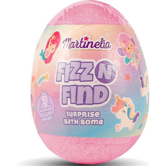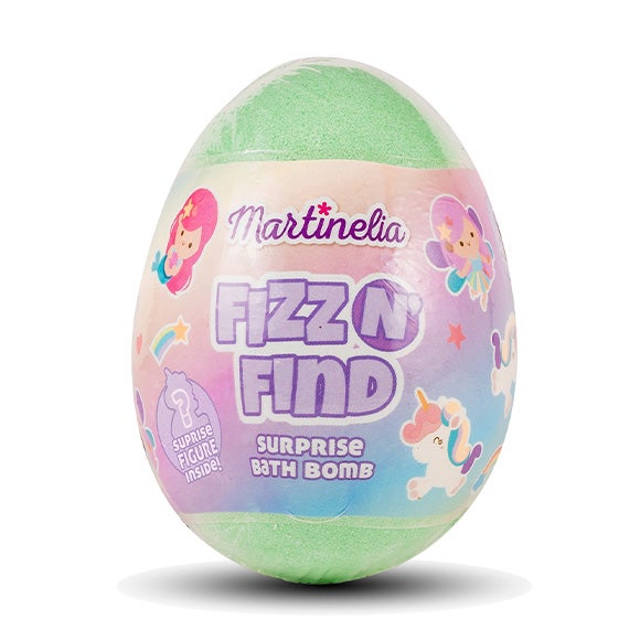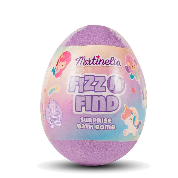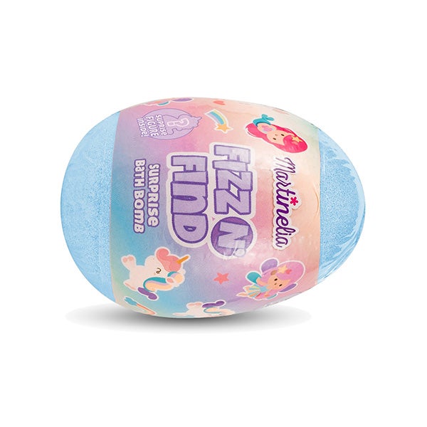 Bomba de banho em forma de ovo com bonecos surpresa no interior.