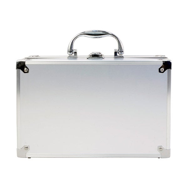 Maletim cosmético de metal. Tamanho: 255 x 180 x 85 mm.