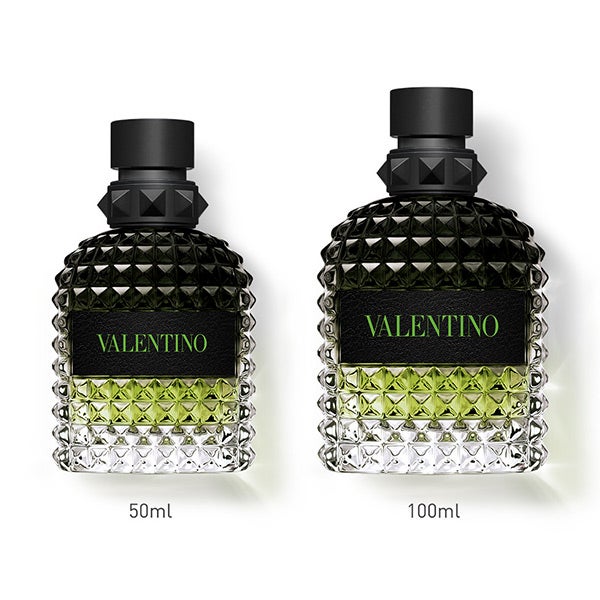 O frasco de Born in Roma Green Stravaganza homenageia o icônico Rockstud de Valentino, com um design piramidal e vanguardista inspirado na arquitetura romana, uma assinatura distintiva da Maison Valentino. A modernidade do frasco é realçada com o contraste de couro preto e verde vibrante. Na Valentino, o verde é ousado e excessivo, apaixonado e extravagante, exatamente como você!