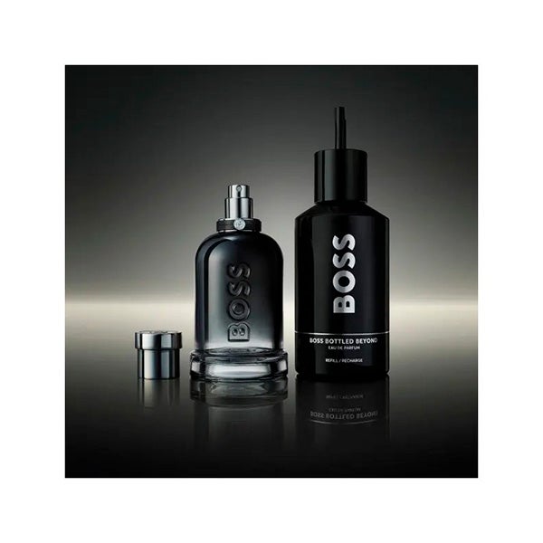 BOSS Bottled Beyond Eau de Parfum Refil 200ml prolonga a vida do seu frasco com uma fragrância intensa e sofisticada. Com um caráter dual, combina a frescura energética do gengibre com o calor sensual do couro para alcançar uma trilha poderosa e equilibrada.