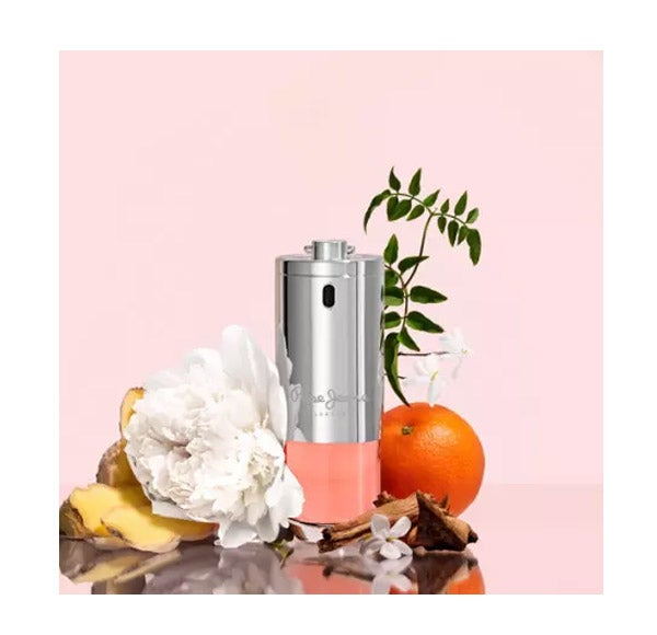A fragrância se abre exibindo deslumbrantes notas de mandarina com um frescor picante de pera e