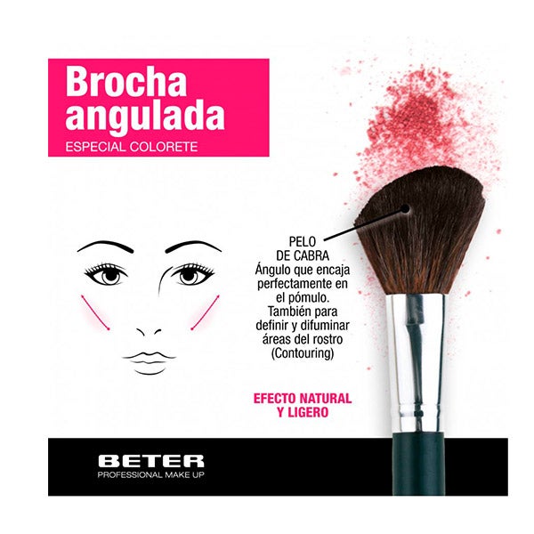 Em primeiro lugar, é feito de pelo natural de cabra, por isso servirá durante anos sem perder sua suavidade. Em segundo lugar, sua forma angular faz com que seu uso seja eficaz e muito simples, basta pegar o blush que deseja aplicar e espalhá-lo pelas bochechas com o pincel. Mede 15'8 cm, o que torna seu uso confortável.