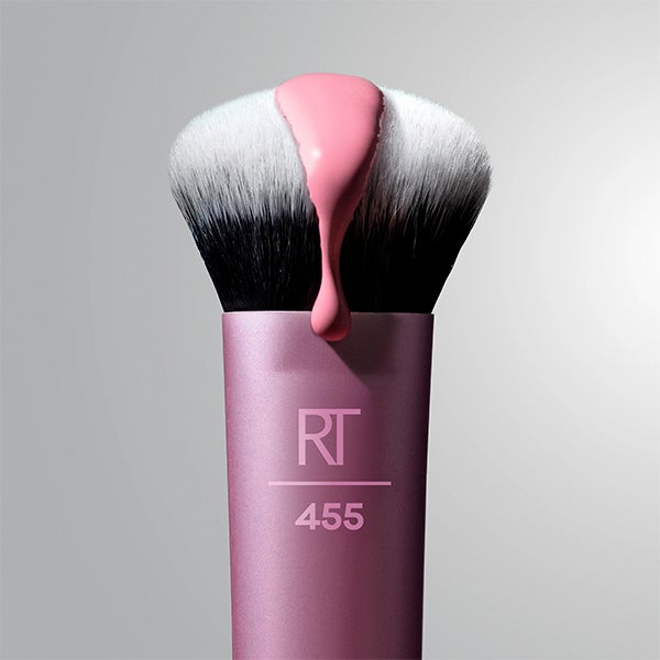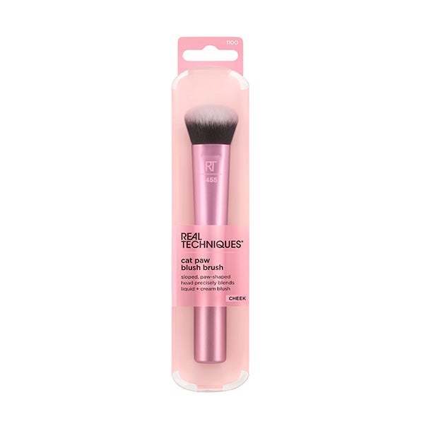 O pincel para blush Real Techniques possui cerdas ultramacias e flexíveis com um formato único de pata de gato que se adaptam perfeitamente às curvas do rosto para uma cobertura máxima e uma aplicação fácil e controlada do blush líquido ou em creme. Cabo longo e durável fácil de segurar.