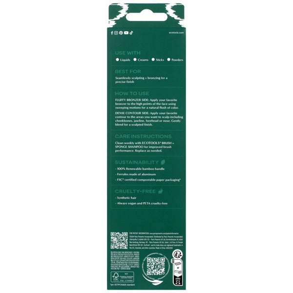 Ambos os pincéis podem ser usados para esfumar seu bronzer e contorno líquido, em creme, em bastão ou em pó favorito. Assim como todos os nossos produtos EcoTools, este pincel de maquiagem é 100% livre de crueldade animal e vegano.