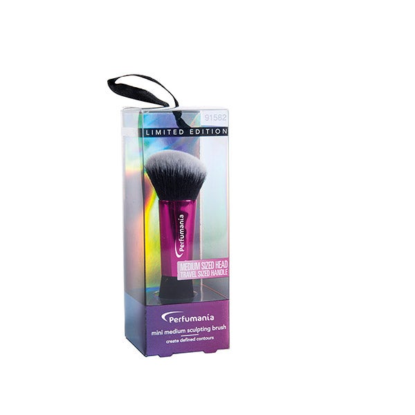 Pincel desenhado para se adaptar ao contorno facial e maçãs do rosto.
